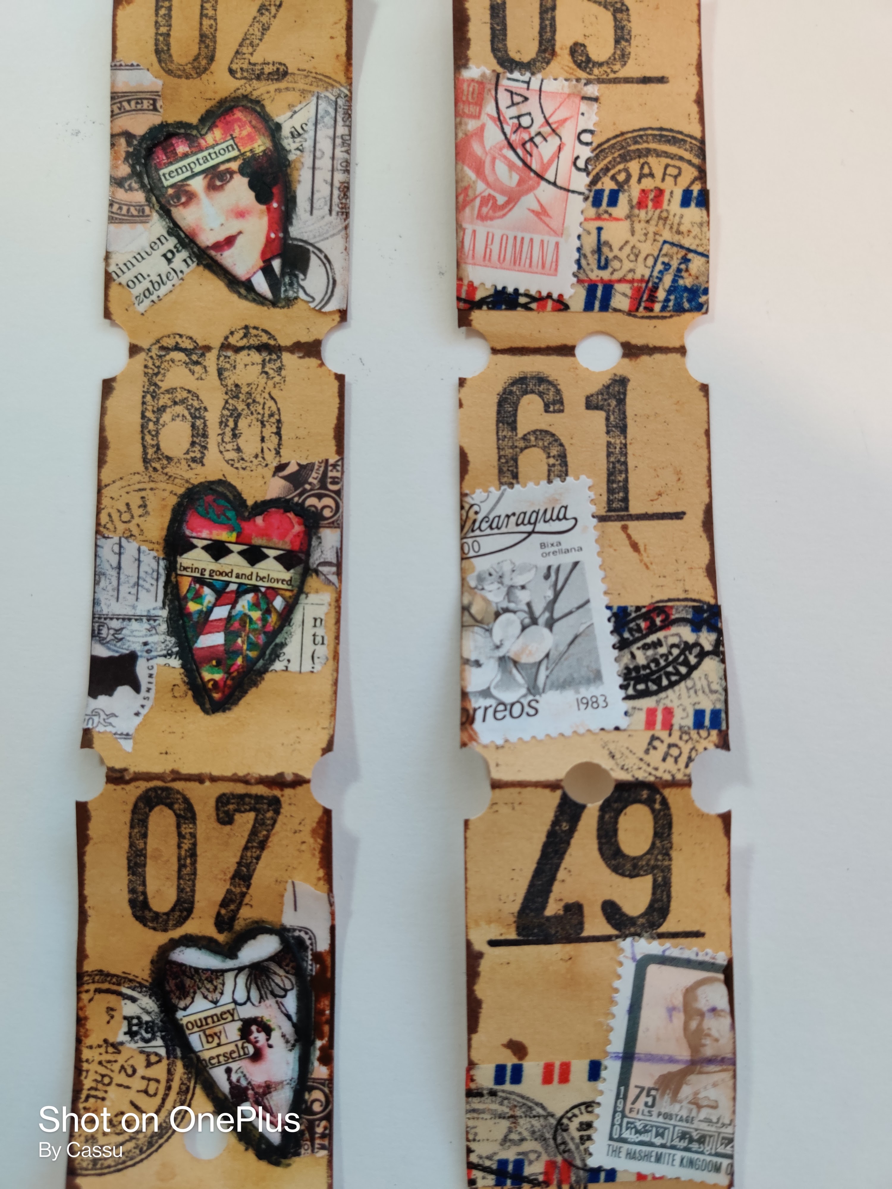 tuli tänään tehtyä. Cassun Puuhapajassa syntyi tänään itsetehtyjä lippuja eli vintagetickets tai journaltickets. Kuinka vaan sen enklantiksi haluaa sanoa.